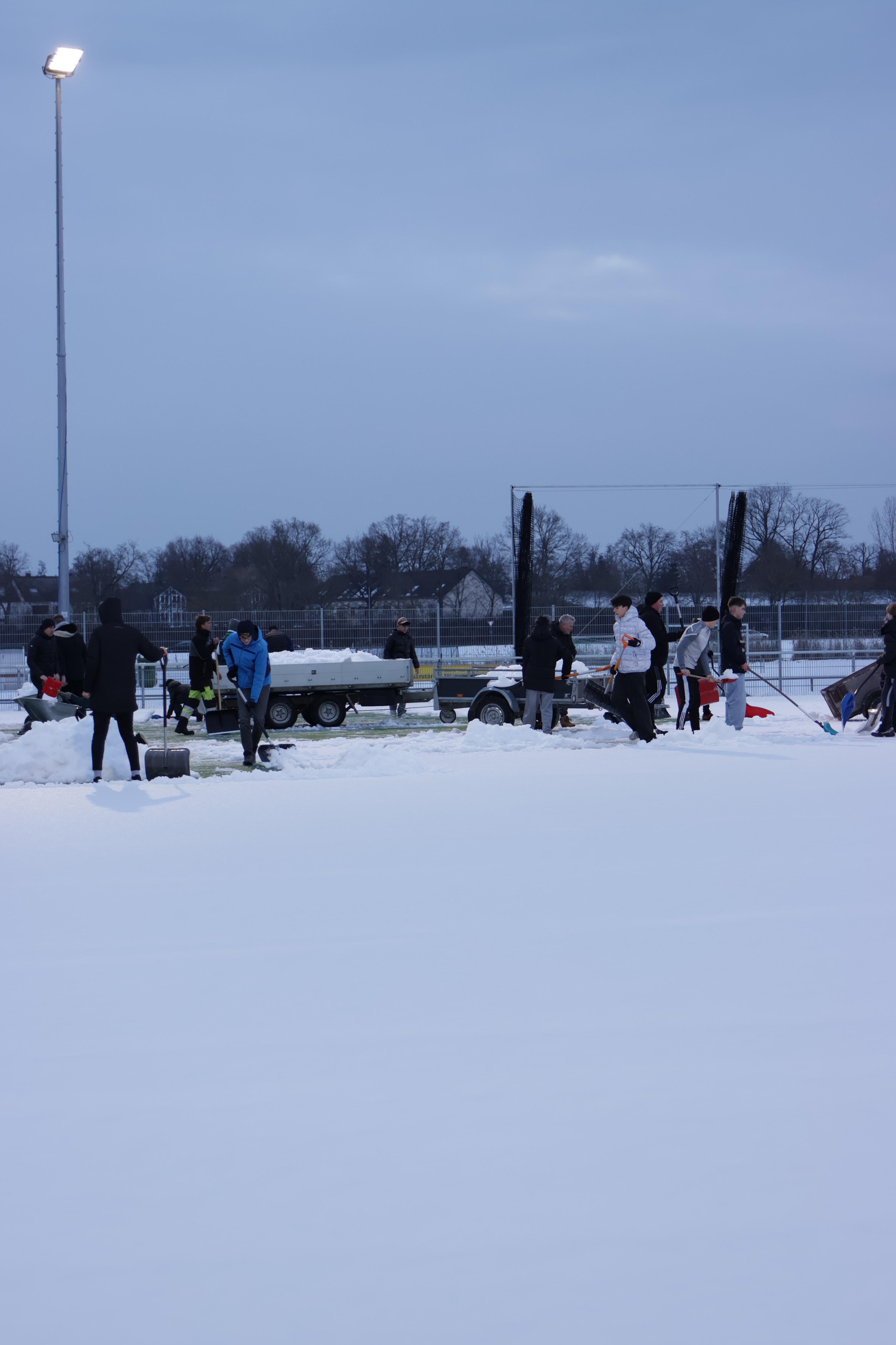 In einer tollen Aktion haben engagierte Helfer die Hälfte unseres Kunstrasenplatzes vom Schnee befreit. Mit Schaufeln, guter Laune und echtem Teamgeist wurde der Platz Stück für Stück wieder bespielbar gemacht.
